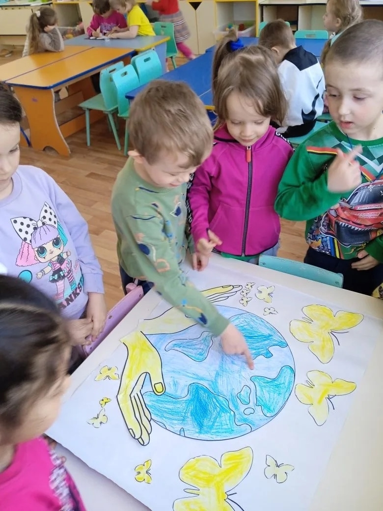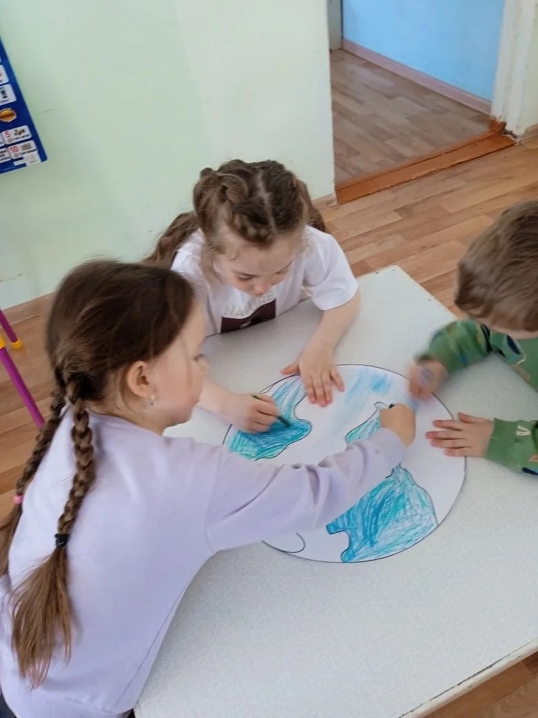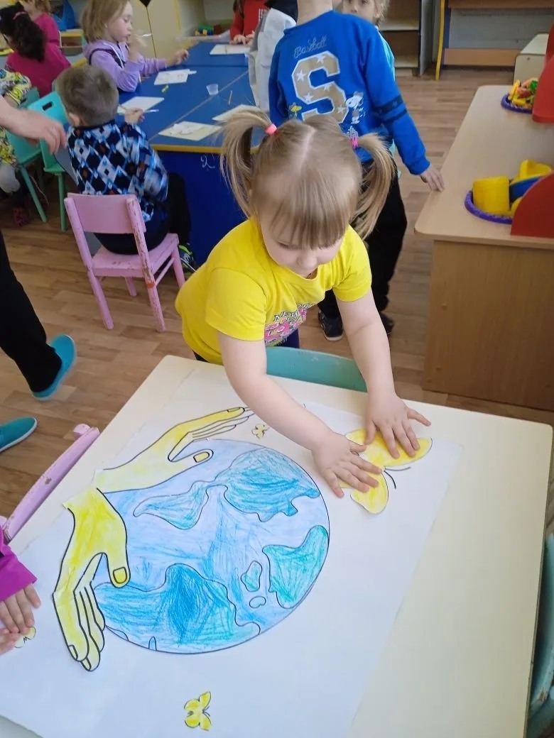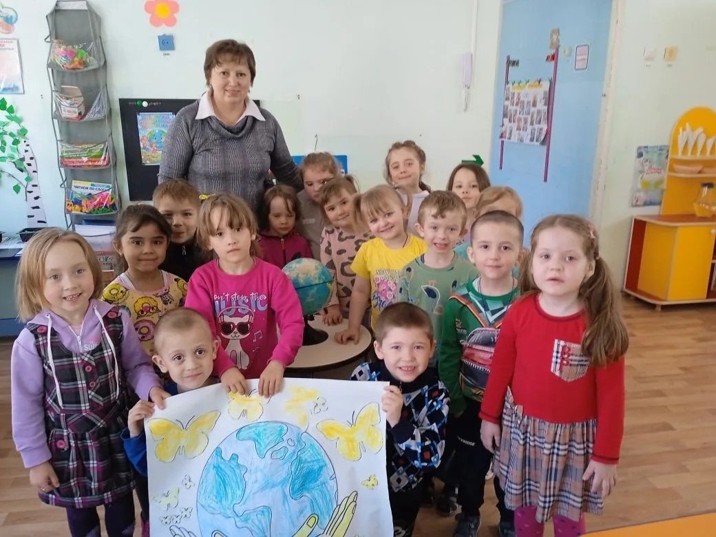 22 апреля отмечается Международный день Земли. Он посвящён защите окружающей среды, бережному отношению человека к природе. Воспитанники старшей группы на комплексном занятии узнали, что в этот день принято звонить в Колокол Мира. Выяснили чем богата Земля, что является лёгкими нашей планеты, как защищать природу. Поиграли в игру "Всё о тебе", отгадывали загадки, ответили на вопросы экологической викторины. А в творческой мастерской выполнили коллективную работу "Береги планету - краше её нету! "